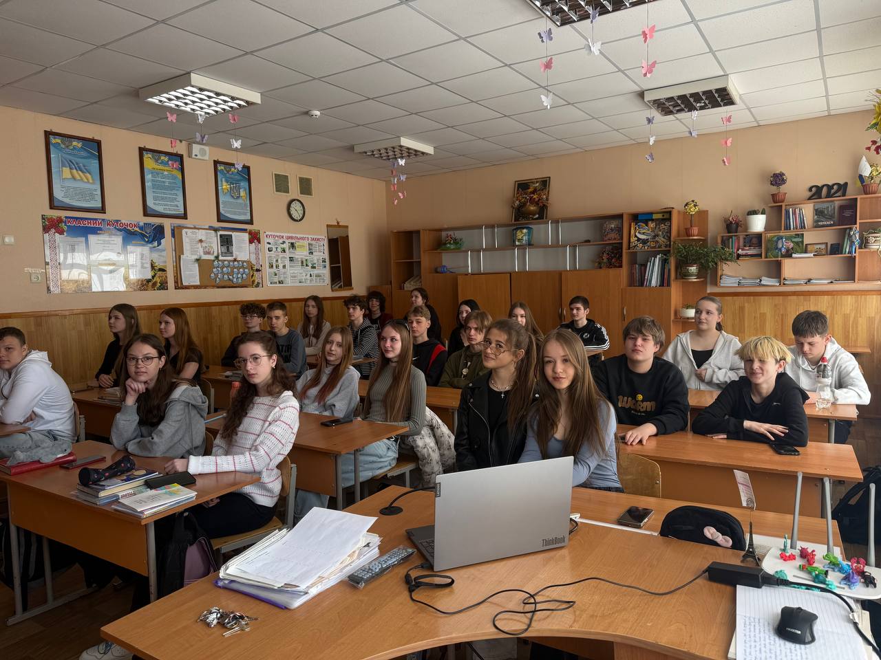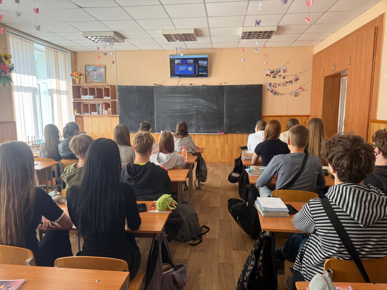 Під час уроку учні переглянули та обговорили документальні матеріали, присвячені подіям у Чорнобильська зона відчуження під час російської окупації. Зокрема, йшлося про перебування загарбників на території Чорнобильська АЕС та небезпеки, які виникли внаслідок їхніх дій.